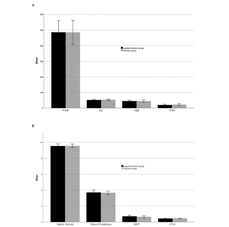 The following limitations were identified in the current study: 1) the low number of sample size, 2) the process of bone remodeling takes a long time, particularly with age increase. Therefore, a lack of efficacy may be due to short-term intervention. 3) this supplement should be used with a lot of water to have better efficacy, while there is no information about it.