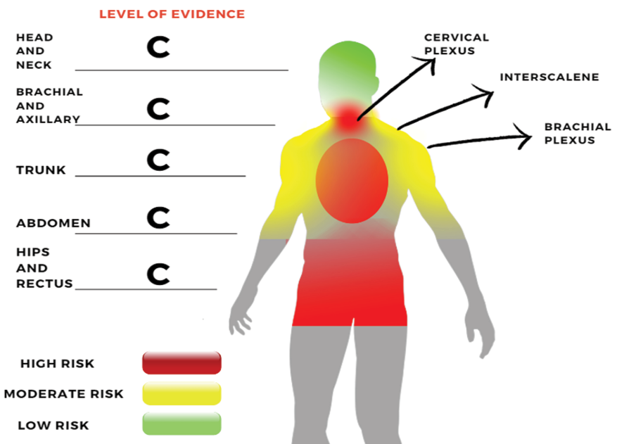 The schematic in Figure-2 shows the summary of evidence. There is no evidence of puncture site bleeding complications in head and neck punctures except in a rare case showing hematoma incidence after the Infraclavicular brachial plexus block reviewed in the Tsui et al. study. But, a deep cervical plexus block is not recommended.