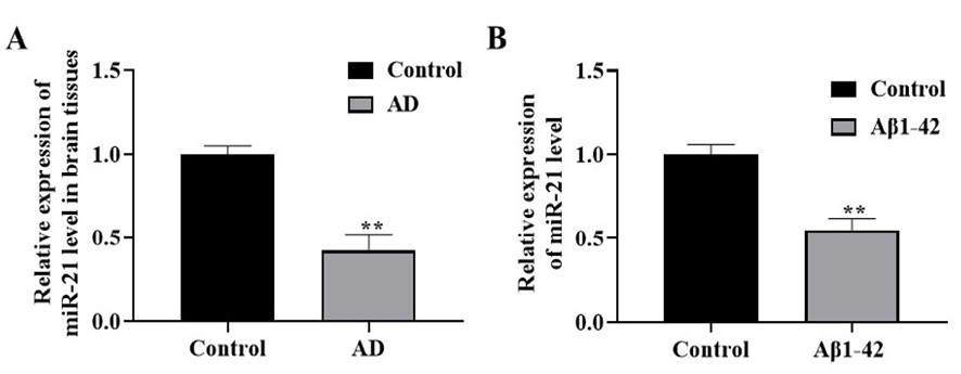 miR-21 Expression in AD Brain Tissue Samples and SH-SY5Y Cells