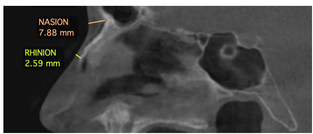 This study employed vertical cephalic radiographs with subsequent 3D reconstructions for data collection. The axial sections ensured complete visualization of the maxilla and its pterygoid processes. Scanning parameters were adjusted to optimize image quality based on individual patient characteristics. Two independent evaluators, a radiologist and a student, assessed the images using Ramixis 5.1.1 software on a computer equipped with a high-resolution (1920 x 1080 pixels) 42-inch LG monitor. Evaluations were conducted in a controlled environment free from light pollution. To assess nasal morphology, a set of established anthropological bony landmarks was utilized [15].