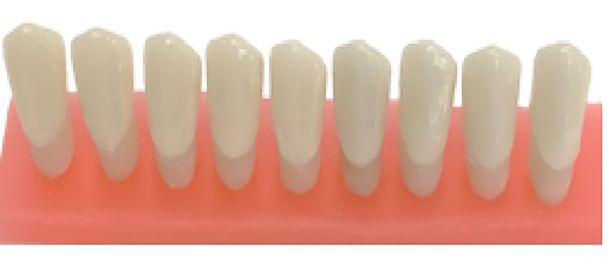 In this original research, the educational model (dental study model 500A; Nissin) was used. The canine acrylic tooth on the left side of the maxilla was selected for the preparation of a single-unit fixed prosthesis. To have a digital index, the model was scanned using a SMART laboratory scanner (Open Technology), and the impression model used polyvinyl siloxane (Panasil) before tooth preparation. Having digital and conventional index were essential for digital and manual wax up methods. The acrylic tooth was prepared using a high-speed handpiece with water spray and a rough Tapered round-end diamond bur for initial preparation, followed by a softer bur to refine the preparation surfaces. The depth of axial and occlusal reduction was 1.5 mm and 2 mm, respectively, and a chamfer finishing line was created 360 degrees [32]. Then, 40 prepared teeth PMMA dies (TopZir, Biotech Co.) were milled using a milling machine (Versamill 5X200; Axsys Dental Solutions). The dies were randomly divided into 4 groups of 10.
