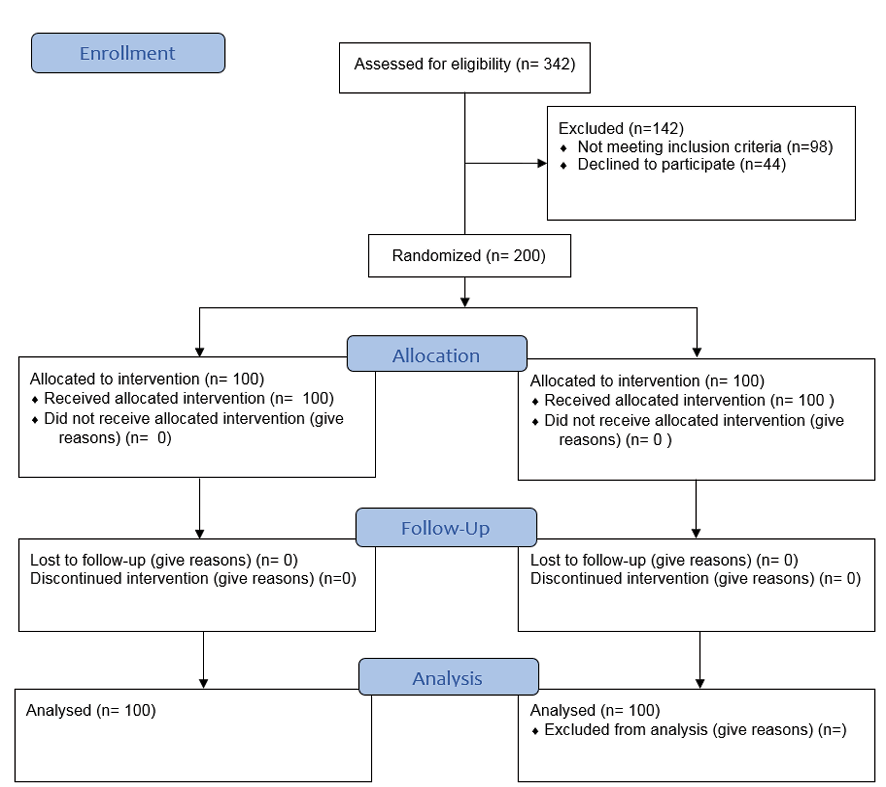 Blinding: This study utilized a double-blind design. Both participants and the researchers who administered the treatments or assessed outcomes were unaware of group assignments. Blinding was maintained throughout the study to prevent bias in the administration of treatments and the evaluation of results (Figure-1).