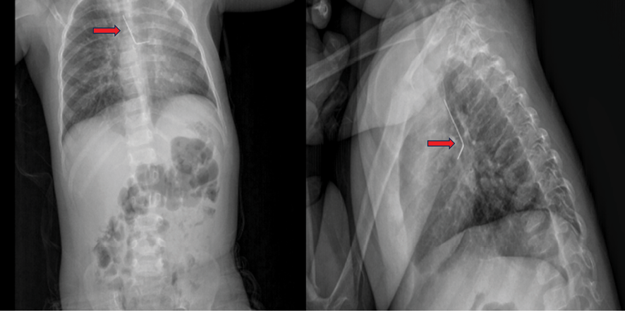 Hamouri et al. reported a series of 56 cases involving needle aspiration. In 52 cases, the needles were successfully removed using flexible bronchoscopy alone, without the need for additional procedures. However, four patients required more advanced interventions. Fluoroscopy was used in conjunction with bronchoscopy in three patients, successfully aiding removal in two of them. The remaining two patients—one with a failed fluoroscopy attempt and another where it was not attempted—underwent mini-thoracotomy for needle removal. The average hospital stay for patients who had simple flexible bronchoscopic removal was 1.5 days (range 1–3 days). Those who underwent the successful combination of bronchoscopy and fluoroscopy stayed 2 and 4 days, with the latter patient being asthmatic and experiencing an exacerbation during hospitalization. The patients who required mini-thoracotomy had hospital stays of 4 and 6 days. Additionally, a single case involved a pin embedded in the lung parenchyma, which necessitated removal via mini-thoracotomy [17].