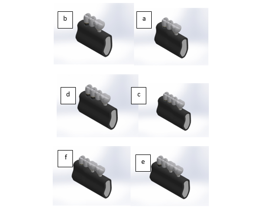 Six virtual models of tooth-implant retained prostheses were created using SolidWorks 2014. The models varied in terms of periodontal support (normal and weak) and bridge design (three-unit, four-unit with two dental abutments, and four-unit with two implants).