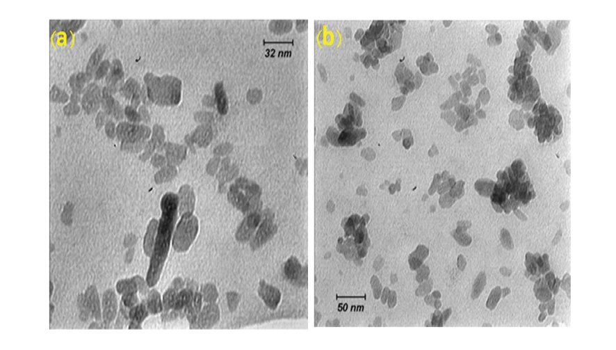 Figure 3. TEM images of NHA powders a) 32 nm resolution b) 50 nm resolution