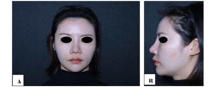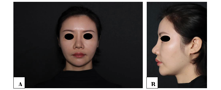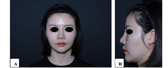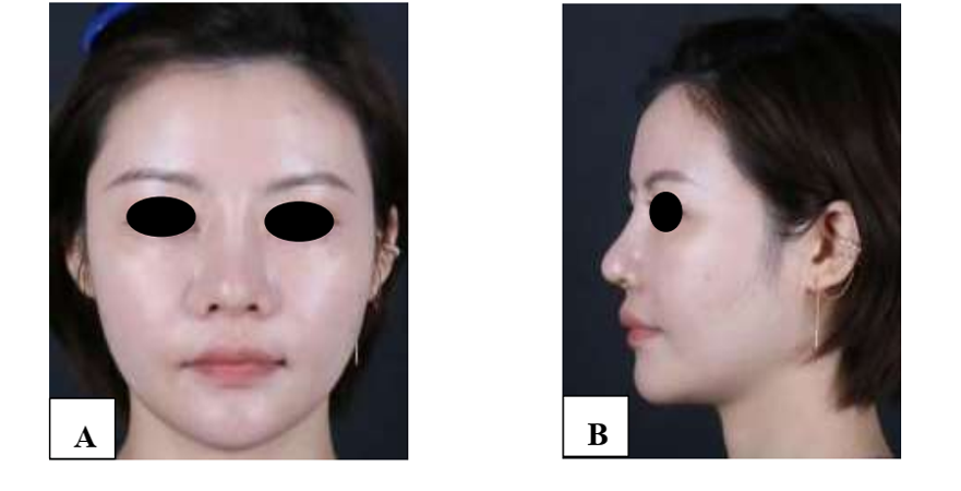 The patient, 32-year-old female, underwent nasal implant surgery in August 2022. Four months after the surgery, she experienced an obvious collapse of the nasal dorsum, which severely affected her appearance. She was admitted to our hospital in September 2022.