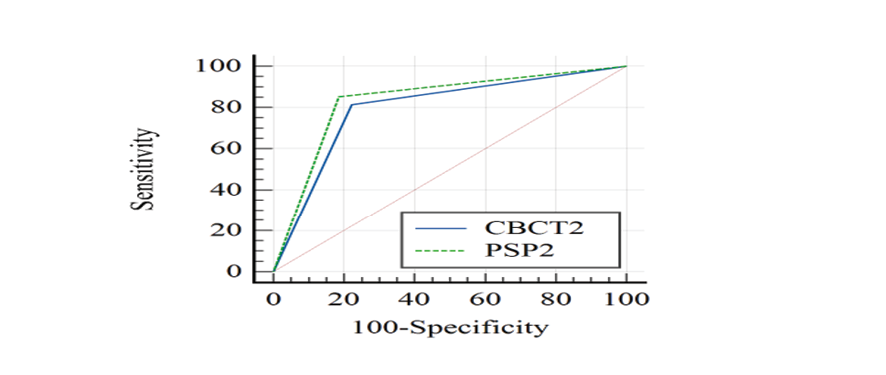 Figure 3. ROC curve for the comparison of PSP digital radiography and CBCT for detection of broken NiTi files in root canals filled with gutta-percha
