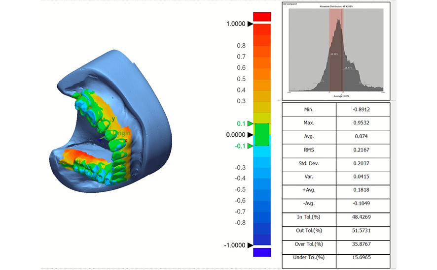 A total of 13 scans for each scanning strategy of each scanner and a total of 117 scans were assessed for trueness. In each scanner group, 12 scans for each strategy, and a total of 108 scans were assessed for precision.