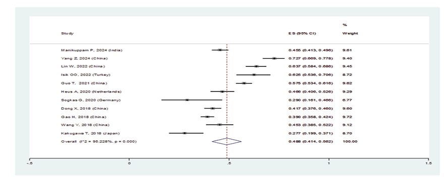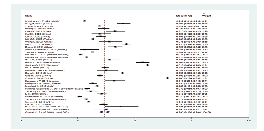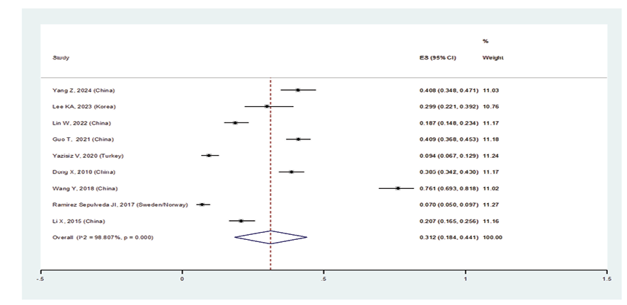 • Cross-sectional studies was 21.4% (95%CI: 11.9%, 31%) (Figure-2E)