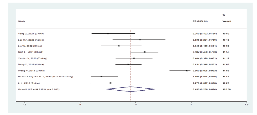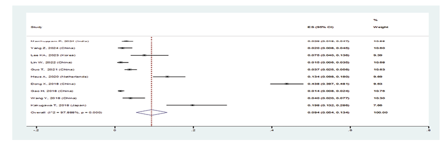 Figure 2 C. Forest plot related to the prevalence of ILD C: in males with pSS