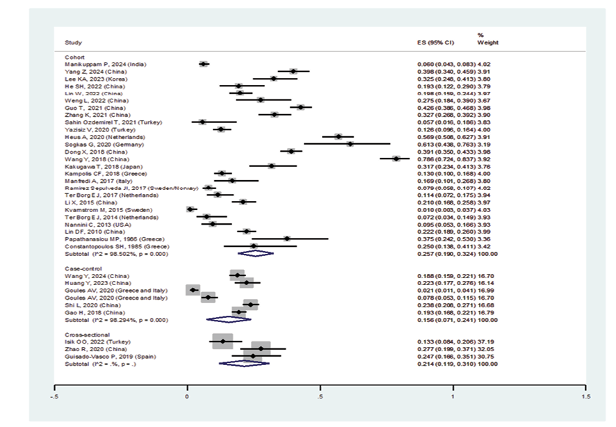 • Cohort studies was 25.7% (95%CI: 19%, 32.4%)