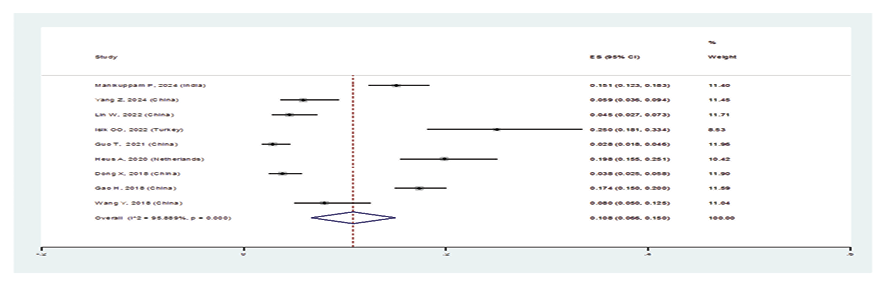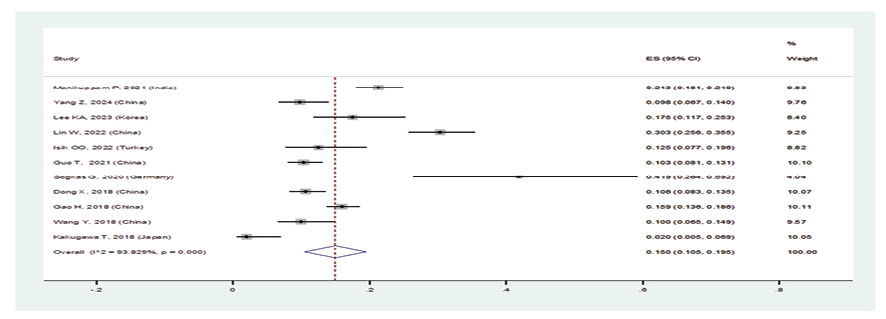 • Case-control studies was 15.6% (95%CI: 7.1%, 24.1%)