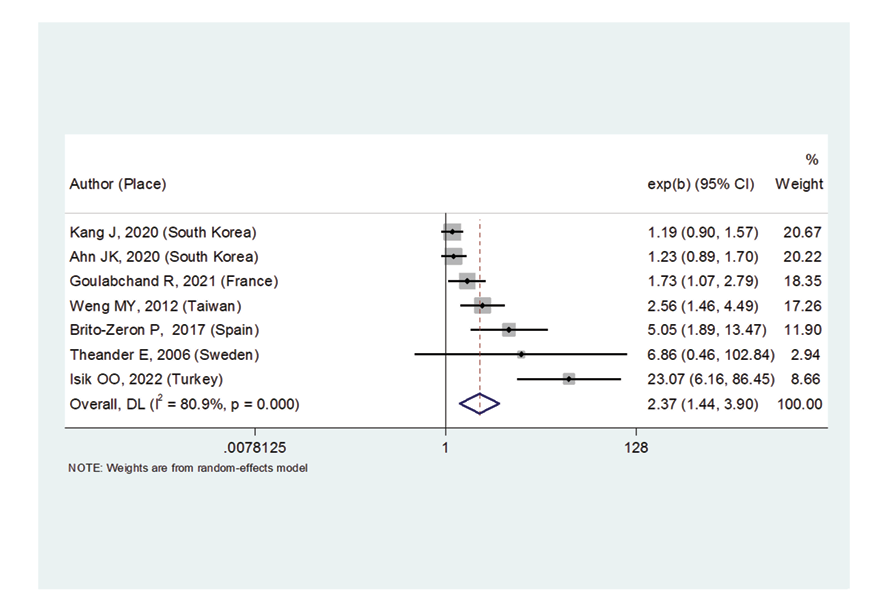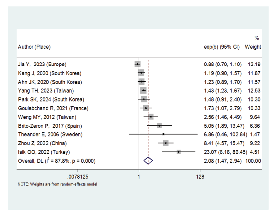 Figure 2. Forest plot related to the association between Sjogren's syndrome and thyroid cancer risk
