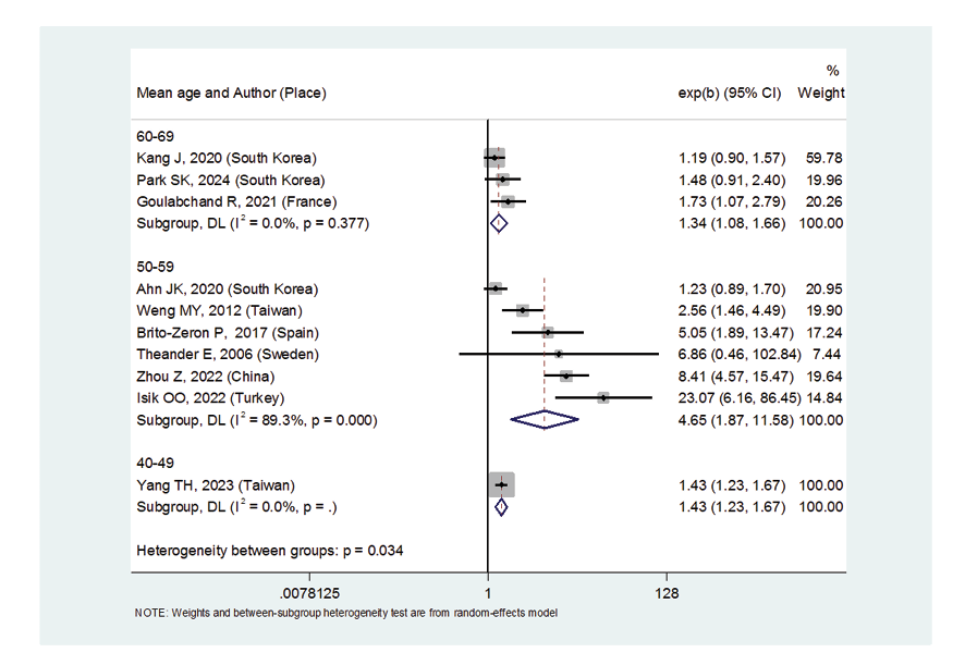 Figure 3. Forest plot related to the association between Sjogren’s syndrome and thyroid cancer risk by mean age