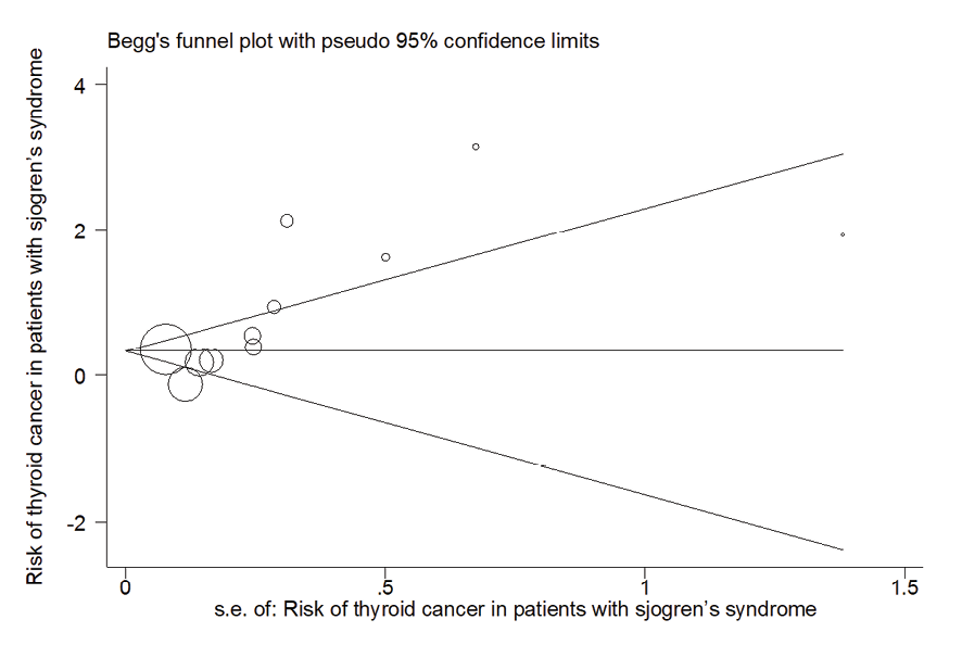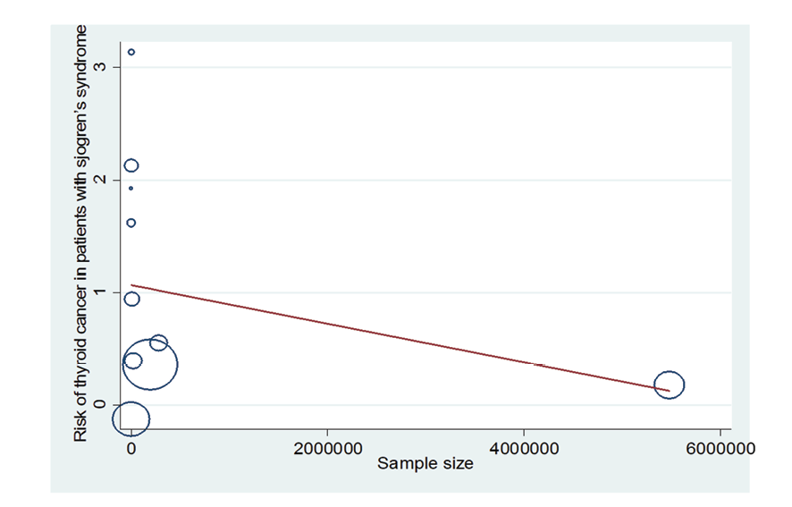 Figure 9. Meta-regression plot of the relationship between “association between Sjogren's syndrome and thyroid cancer risk” and sample size
