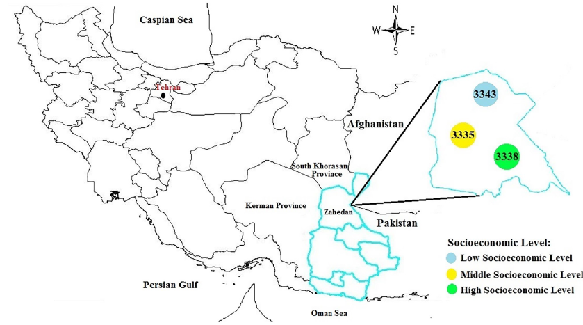 Zahedan, the capital of the country's second largest province, is located in the southeast of Iran with a population of more three million people and has a border of 1100 kilometers with Afghanistan and Pakistan [17]. This province mainly consists of Baluch and Sistani ethnicity. This province has the lowest economic growth rate among the provinces of the country due to cultural factors, geographical location, and also environmental factors.