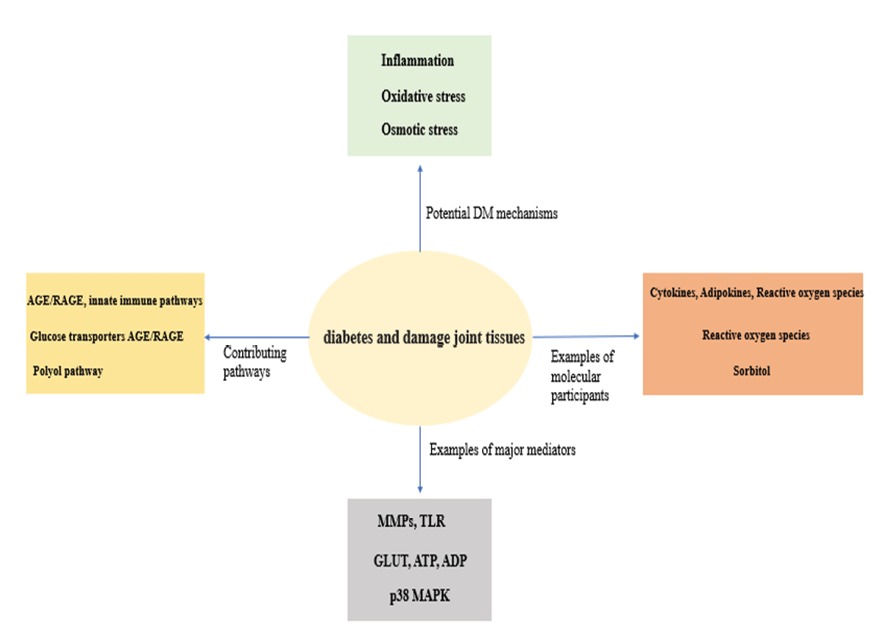 Basic science investigations have uncovered several potential mechanisms associated with joint damage influenced by DM [24-30] (Figure-1, Table-1).