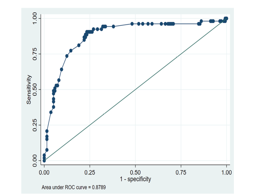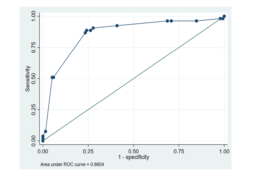 Figure 1. Receiver Operating Characteristic (ROC) Curve for Neonatal Weight Loss Predicting Hyperbilirubinemia