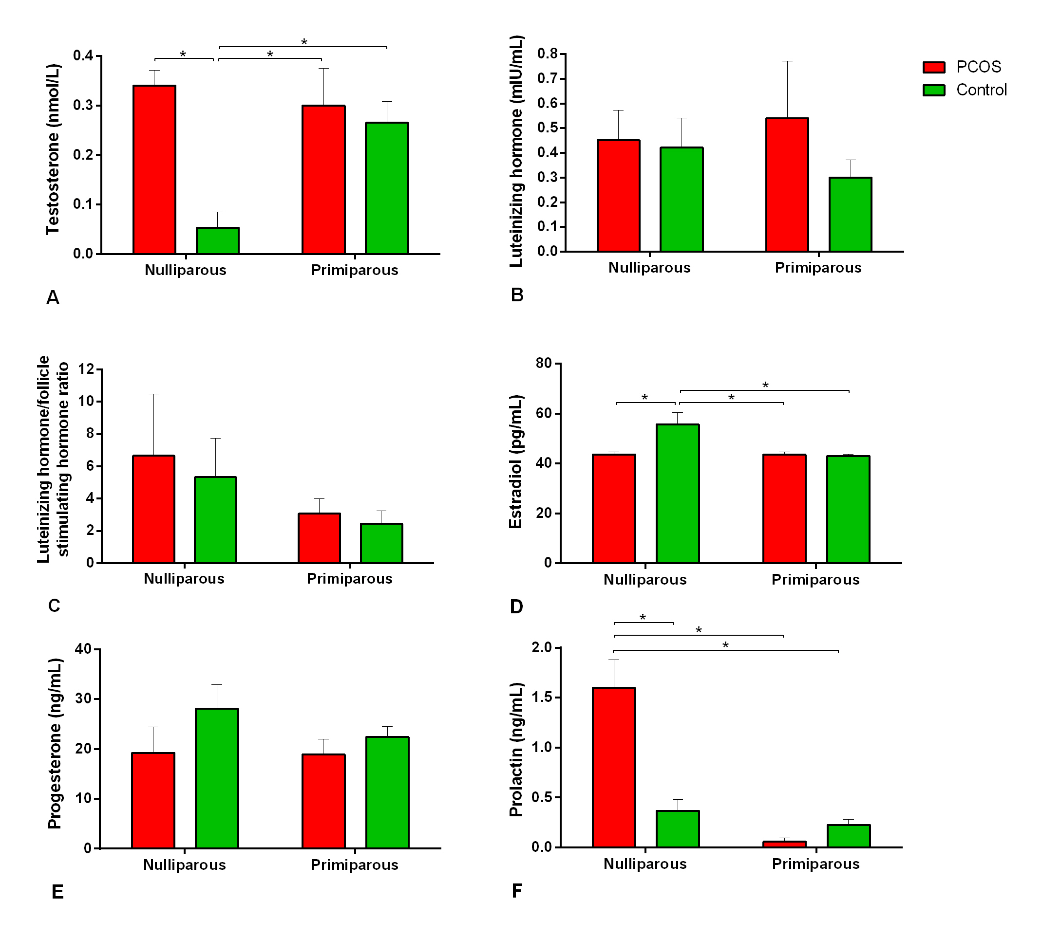 Materials and Methods: In the current experimental study, 24 female rats were randomly and equally allocated into nulliparous and primiparous groups and then were divided into two subgroups of PCOS and control. PCOS was induced by exposure to continuous light. Sex-related hormones were evaluated by radioimmunoassay or immunoradiometric assay. Expressions of MC4R and kiss1 gene in the ARC of the hypothalamus of the rats were evaluated by real-time PCR. Histomorphometric alterations of ovaries were compared between groups.