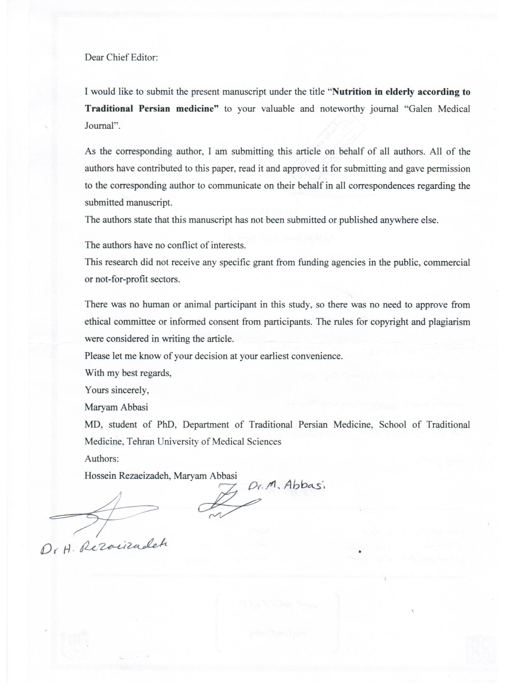 Nutrition, Aging, Elderly, Traditional Persian MedicineAbstract