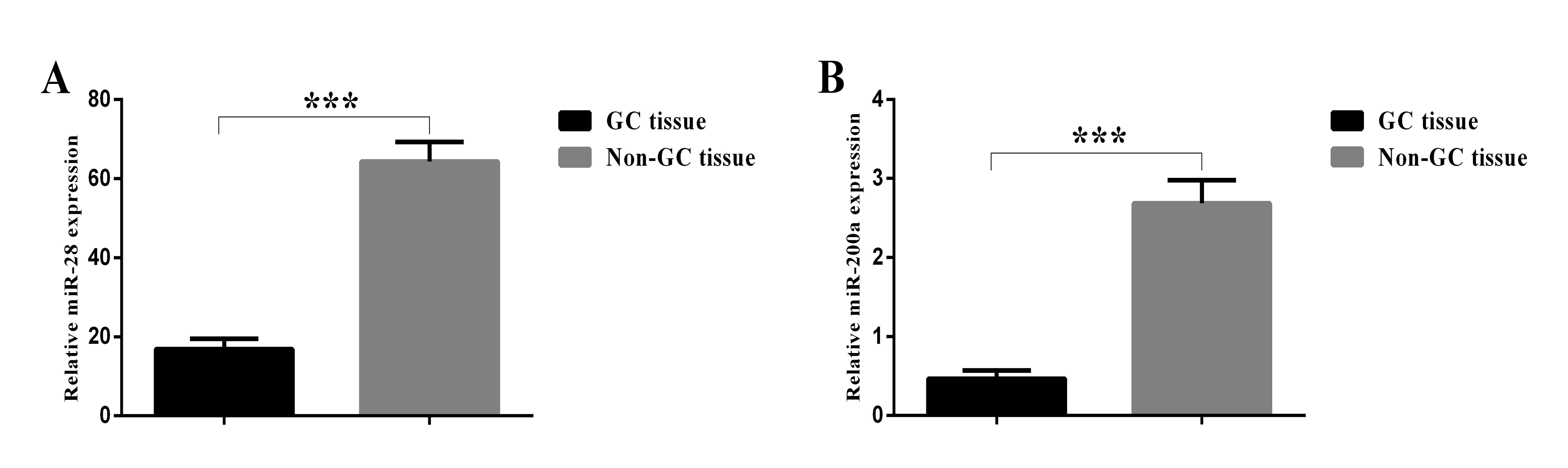 Reduced Levels of miR–28 and miR–200a Act as Predictor Biomarkers of Aggressive Clinicopathological Characteristics in Gastric Cancer Patients