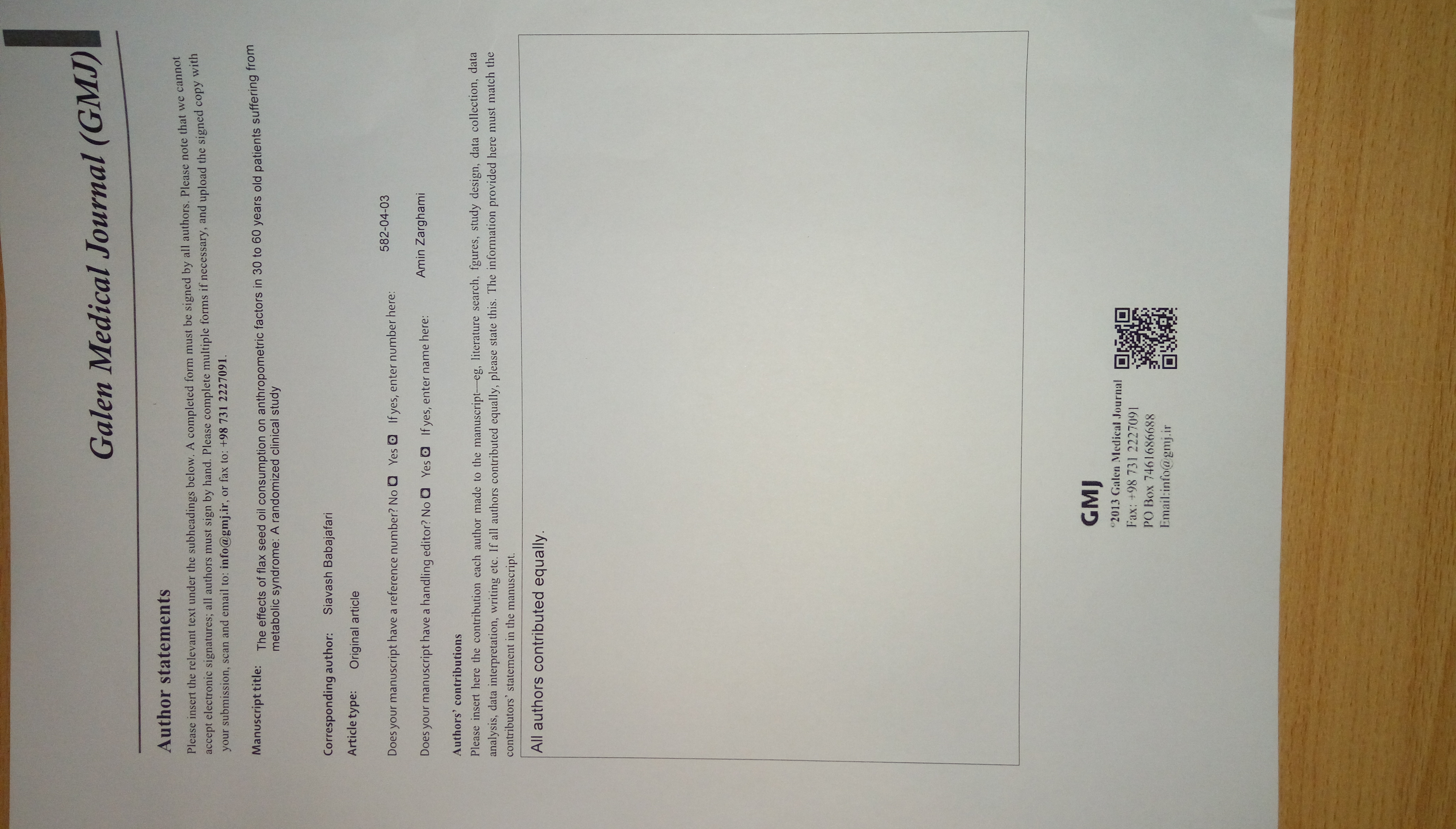 Effects of Flaxseed Oil Consumption on Anthropometric Parameters in the Patients with Metabolic Syndrome: A Randomized Clinical Trial