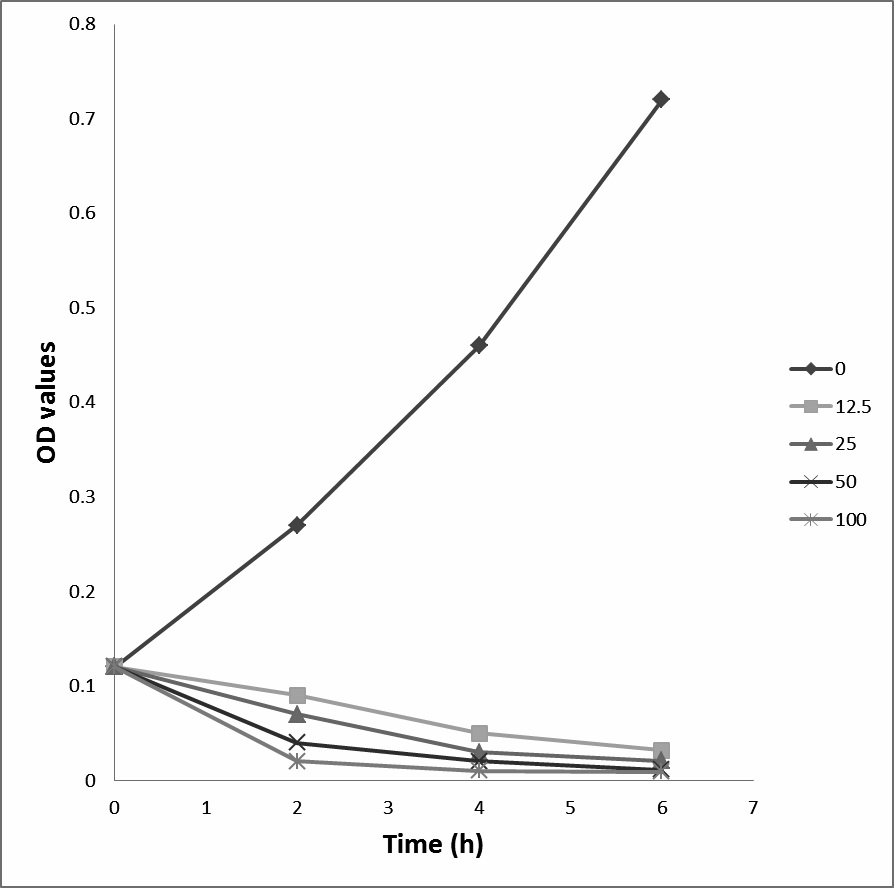 Background: Development of new antimicrobial drugs targeting virulence factors of pathogenic bacteria is an effective strategy to address increasing emergence of resistant bacterial strains. Considering the clinical importance of Staphylococcus aureus and global emergence of antibiotic-resistant strains of this pathogen, the present study was carried out to investigate the inhibitory effects of silver nanoparticles (SNPs) on growth and capsule formation as a virulence factor of S.aureus. Materials and Methods: The SNPs were biologically synthesized by unicellular microalgae Chlorella vulgaris and its inhibitory effect on the growth of S. aureus and expression of capsule encoding gene (cap8) was quantitatively evaluated by serial microdilution and Real-Time PCR; respectively. The growth rate of S. aureus under nanoparticles treatment was monitored in a six-hour interval. Results: The results obtained in this research indicated the formation of monodisperse spherical SNPs that inhibited S. aureus growth at a concentration of 50μg/ml (minimum inhibitory concentration (MIC)=50μg/ml). The growth kinetic analysis showed that S. aureus growth was significantly diminished immediately after treatment. Moreover, the SNPs decreased expression of type 8 capsule (cap8) gene even at concentrations below MIC value. Conclusion: The results of this experiment suggest that biologically synthesized SNPs are fairly ideal candidates for the development of new antimicrobial drugs against S. aureus. [GMJ.2016;5(4):200-7]