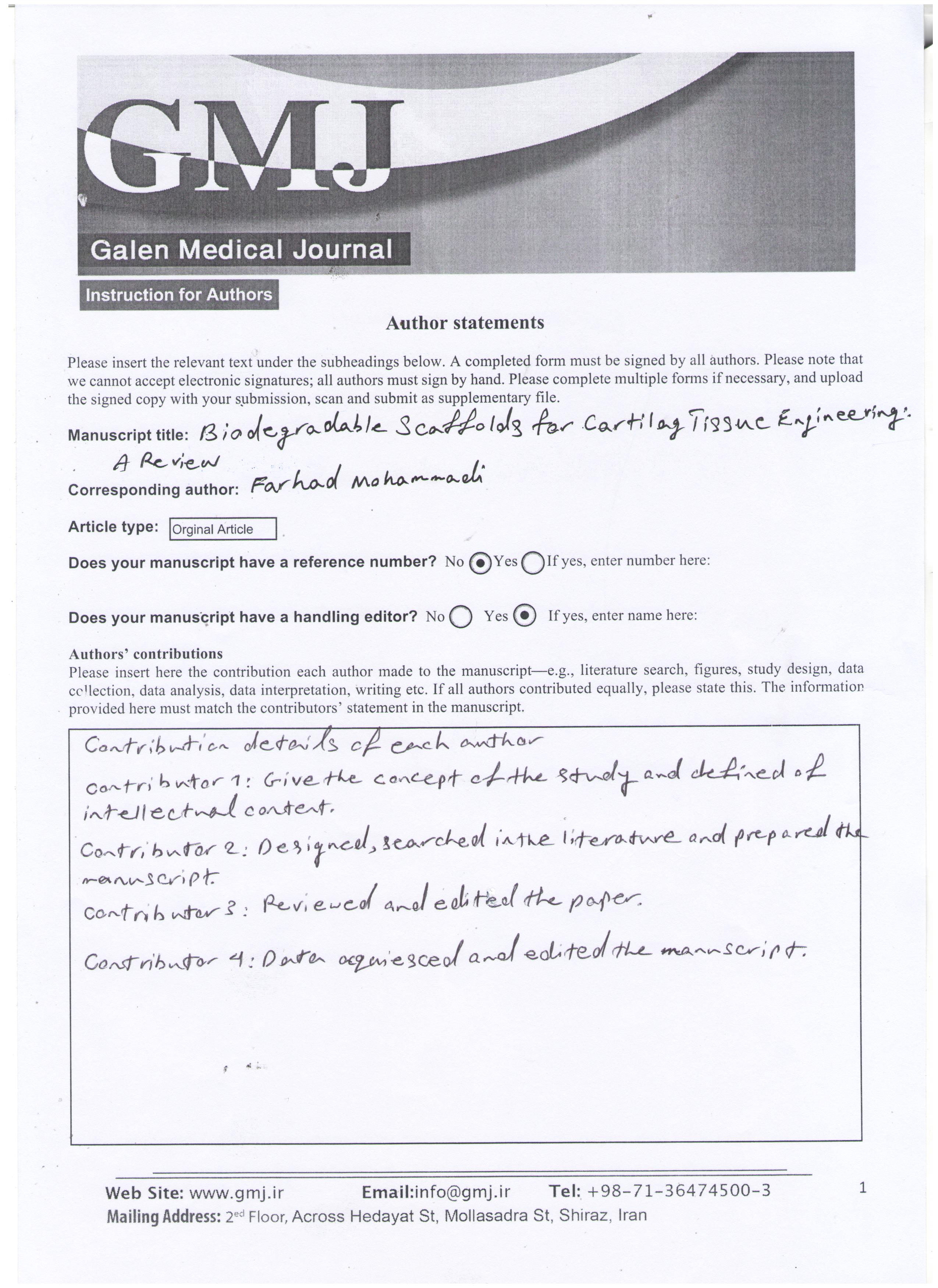 Biodegradable Scaffolds for Cartilage Tissue Engineering